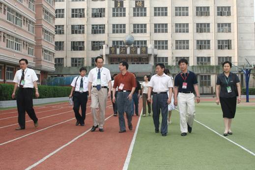 6月5日上午8时30分,教育部评估专家组秘书朱显成博士和龚方红博士在我院党委副书记李全武、副院长赵荣侠的陪同下考察了我院教育教学实习基地、省级重点中学——石油中学。