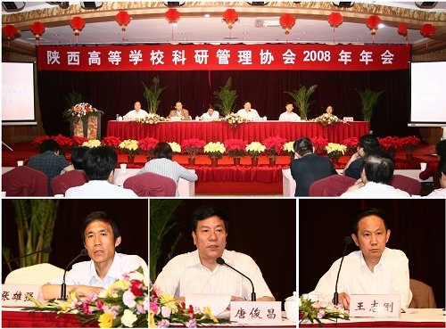5月12日,陕西高等学校科研管理协会2008年年会在宝鸡隆重召开。会议由陕西高等学校科研管理协会主办,西安建筑科技大学承办,beat365英国官方网站协办。中共宝鸡市委书记唐俊昌,陕西高等学校科研管理协会理事长、西安理工大学校长刘丁,陕西省教育厅副厅长张雄强,陕西省教育厅科研与产业处处长窦海潮以及我院院长王志刚、副院长赵荣侠出席开幕式。会议由协会秘书长叶青峰主持。