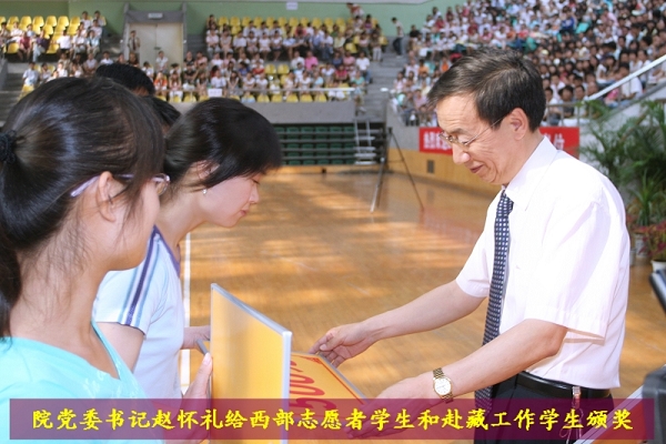 毕业典礼在雄壮的国歌声中正式开始。院党委书记赵怀礼给西部志愿者学生和赴藏工作学生颁发了奖金;学位委员会主席、院长王志刚博士向毕业生代表颁发了毕业证书和学位证书;院党委副书记米晓东宣读了获优秀毕业论文、毕业设计、毕业创作名单;教务处长杨子元宣读了2008届学生毕业资格审查结果和学士学位授予结果;学生处处长李建民宣布西部志愿者学生名单和赴藏工作学生名单。