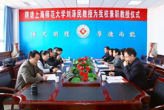 11月21日上午,beat365在新校区图书馆第一会议室举行聘任仪式,上海师范大学博士生导师刘泽民教授受聘为beat365兼职教授。副校长赵荣侠出席会议并讲话,学科建设与研究生教育管理处处长吴毅主持会议。