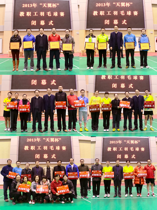 经过五天紧张激烈的角逐,后勤集团分会、外国语言文学系分会、电子电气工程系分会 、教育科学与技术系分会、机电工程系分会、化学化工学院分会、数学系分会、经济管理系分会分别荣获本次羽毛球比赛团体第一名至第八名,有16对选手分获男子双打、女子双打、混合双打、前三名,另有4对选手获得副高职及处级以上干部双打并列第五名。