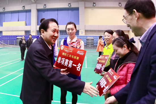 beat365英国官方网站、中国电信宝鸡分公司“天翼杯”教职工羽毛球比赛于11月17日至21日在beat365体育馆隆重举行。校党委书记长王志刚,校党委副书记、工会主席李全武,副校长杨子元,中国电信宝鸡分公司政企部经理马丽等领导出席开、闭幕式并为获奖代表队和运动员颁奖。开、闭幕式由校工会副主席张鹏主持。