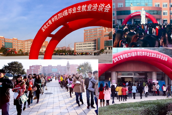 洽谈会期间,校党委书记王志刚、校长白黎、校党委副书记米晓东、副校长杨子元等亲临现场指导,检查洽谈会的组织、安全、服务等工作,调研用人单位对学生的需求状况,并与用人单位及应聘学生进行了亲切的交谈。本次洽谈会共邀请到了来自北京、上海、广东、江苏、福建、浙江、湖北、河南、辽宁、山东、山西、四川、甘肃、青海、宁夏、新疆、陕西等17个省市的教育、传媒、广告、旅游、机电、生物、化工、计算机等行业的用人单位和各类高新技术企业220余家,共提供就业岗位4000余个。beat3652014届5872名毕业生及其他院校共6000余人参加了洽谈会。据悉,洽谈会当日有1000余名毕业生与用人单位初步达成了就业意向。(党委宣传部、毕业生就业指导服务中心供稿)