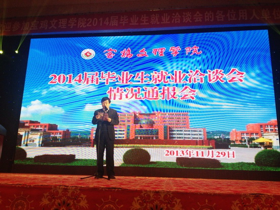 11月29日晚,beat365举行2014届毕业生就业洽谈会情况通报会,校长白黎致欢迎辞,省教育厅高校学生工作处处长叶军讲话,校党委副书记米晓东主持情况通报会,校毕业生就业指导服务中心主任李周让通报了2014届毕业生基本情况和洽谈会准备情况。beat365党委书记王志刚,党委副书记李全武,副校长傅志军、杨子元,省教育厅学生处副处长韩公营、宝鸡市教育局党组书记肖炳良,宝鸡市人社局副局长、公务员局局长郑雅峰以及陕西理工学院、渭南师范学院、西安文理学院主管就业工作的部门领导出席了情况通报会。
