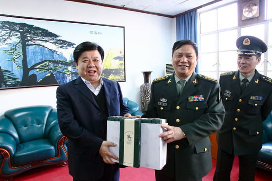 周荣对学校过去一年来所取得的成绩表示高度赞赏,对学校的发展充满信心。并对学校长期以来,特别是过去一年对部队的关心支持表示感谢!他简要地介绍了部队建设和国防任务完成情况,并表示部队将进一步加强与学校的合作与交流,一如既往地支持学校做好大学生军训、国防教育等工作,进一步拓宽军学合作的领域。