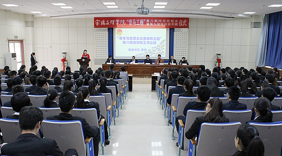 校党委组织部部长郑存库,宣传部部长彭志启,学工部部长、学生处处长李周让,学生处副处长、毕业生就业服务指导中心副主任郝晓炜以及各院系团总支书记、“青年马克思主义者培养工程”第八期培训班结业学员、第九期培训班参训学员等200余人参加了开班仪式。(校团委供稿)