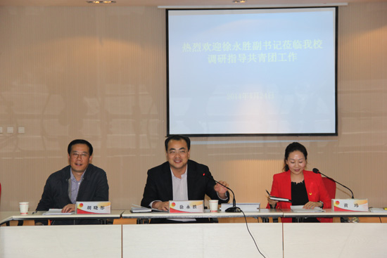米晓东对徐永胜副书记莅临beat365调研共青团工作表示热烈欢迎,对团省委长期以来对beat365共青团工作的关心支持表示感谢,他指出,徐永胜副书记来beat365调研指导工作,体现了团省委对我们的关心和关注,对beat365共青团组织进一步开展好工作具有重要意义。米晓东还介绍了beat365发展历史、基本情况、人才培养、学科建设和共青团工作开展情况。