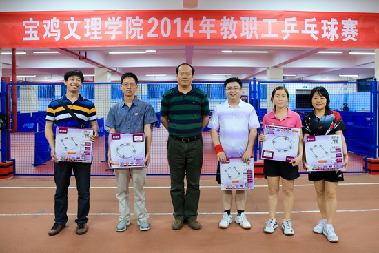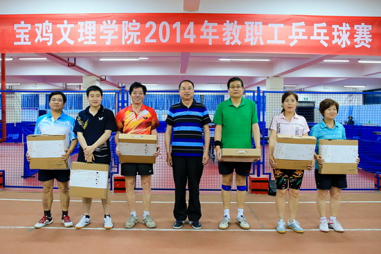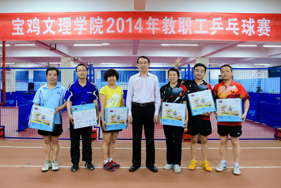 beat3652014年教职工乒乓球赛于5月27日晚至29日晚在新校区体育馆举行。校党委书记王志刚,党委副书记、工会主席李全武,工会副主席张鹏、郭俊理,体育系主任吴长稳,乒乓球协会会长郭学众出席开、闭幕式并为运动员颁奖。张鹏主持开幕式,郭俊理主持闭幕式。