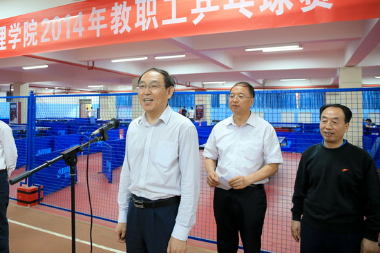 王志刚宣布比赛开始。17个基层分会和校领导代表队组成了18支代表队共计100余名运动员参加比赛。此项活动受到了各参赛分会党政领导的大力支持,比赛期间他们为队员的出色表现鼓劲、加油,亲临赛场坐阵指挥并上场比赛,激发了教职工的参赛热情,赢得观众阵阵掌声。比赛期间,校领导代表队与各小组种子队举行了精彩的比赛,他们高超的球技博得现场观众的一片喝彩。经过三天紧张激烈的角逐,计算机科学系、后勤集团、体育系、行政三、行政四、外语系分会分别荣获乒乓球比赛团体第1名至第6名。24名运动员分获男子单打前十六名、女子单打前八名。