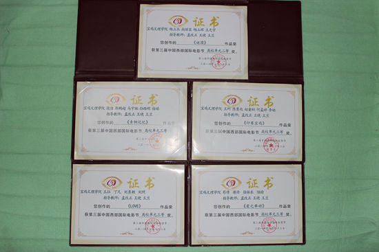近日,由中国西部国际电影节组委会、中国高等院校影视学会、甘肃省电视艺术家协会主办的第三届中国西部国际电影节颁奖盛典暨中国影视发展战略高峰论坛在青海西宁落下帷幕。beat365文学与新闻传播学院广播电视编导专业学生夺得5项大奖。其中,杨立杰、尚丽亚组《谜团》荣获二等奖;苟倩、谢丹、徐振东、陆瑜组《爱之举动》,王征、丁凡、刘勇朝、刘照组《LOVE》,段佳、靳鹏超、马宇驰、孙路明、徐琪组《青铜记忆》,王珂、陈勇兆、赵童桐、李娅、何孟婷组《印象·宝鸡》分别获得三等奖。获奖作品均由广播电视编导专业教师孟改正、王晓、王兰指导。