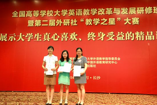 “全国高等学校大学英语教学改革与发展研修班”暨第二届外研社“教学之星”大赛于7月18日到21日在湖南长沙举行。来自全国各高校的300多位教师参加本次研修,其中33位大学英语教师以“微课”的形式进行比赛,以此展示个人教学风采,和同行切磋,与专家交流。beat365由外国语言文学系副主任姚艳梅带队指导,有6名教师参加了本次研修班,其中外国语言文学系教师卫蕾参加“教学之星”微课大赛。