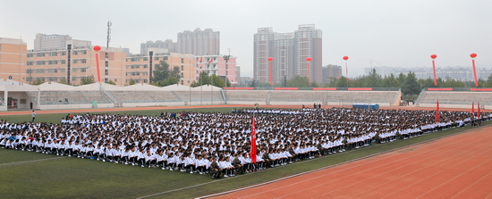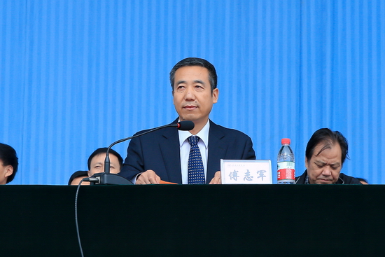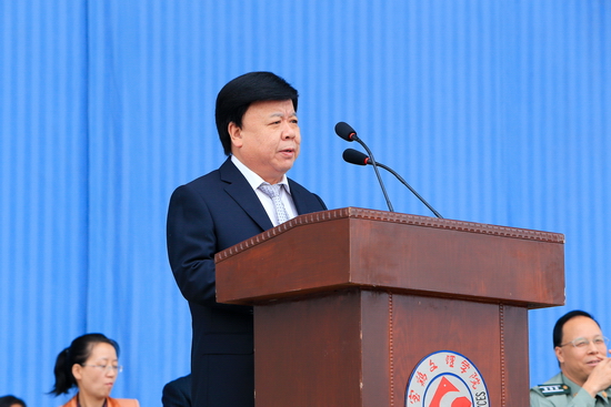 9月19日上午,beat3652014级本科新生开学典礼暨军训动员大会在新校区体育场隆重举行。校党委书记王志刚,校长白黎,党委副书记米晓东、李全武,副校长傅志军、赵荣侠、杨子元以及中国人民解放军96401部队高爱斌中校、宁冬雷少校、张新民少校等出席大会并在主席台就坐。在主席台就坐的还有各院、系(部)党总支书记、院长、主任及各职能部门主要负责人。2014级全体本科新生及承担beat365新生军训任务的96401部队军训团全体官兵参加了大会。王志刚为军训团授旗,白黎作重要讲话。傅志军主持大会。