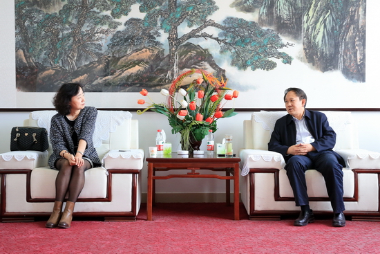 王虹对母校近年来取得的成绩感到振奋,她深情地回顾了20多年前在母校度过的令人难忘的美好时光。她说,毕业后无论在哪个岗位都非常关心和关注母校建设和发展,这是一种难以忘怀的母校情结。她向母校领导和老师汇报了自己20多年来的工作经历,并结合工作实际,从专业实践的角度发表了自己对人才培养的认识。她就建立实习基地与校领导和与会老师交流了意见,并表示愿意与学校进行合作,也愿意通过努力为学校建设和发展贡献绵薄之力。同时,希望学校能推荐优秀人才支持画报社的发展。