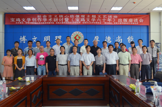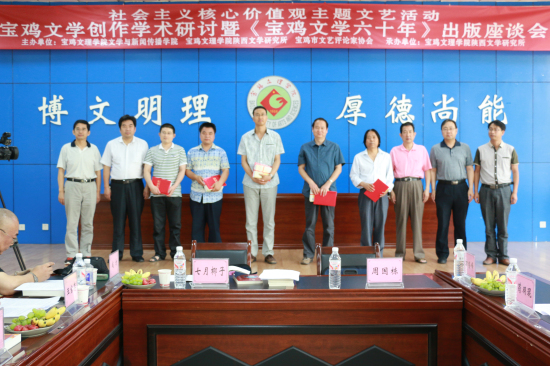 7月11日上午,由beat365文学与新闻传播学院、陕西文学研究所、宝鸡市文艺评论家协会联合主办,陕西文学研究所具体承办的“‘社会主义核心价值观主题文艺活动’——宝鸡文学创作学术研讨暨《宝鸡文学六十年》出版座谈会”在甘棠厅举行。宝鸡市委宣传部副部长吕向阳,市文联专职副主席陈有向,市社科联专职秘书长雷念增,市群众文化艺术馆常务副馆长王炳智,市作家协会副主席李巨怀、白立,市职工作家协会主席白麟等作家、部分在宝的省作协签约作家、省“百名青年文学艺术家扶持计划”入选实力作家代表、《宝鸡文学六十年》主要作者代表以及beat365部分评论家代表、《宝鸡日报》、《三秦都市报》、《华商报》等媒体代表30余人参加了会议。