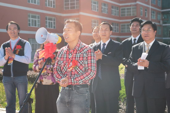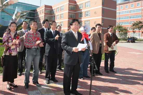 剪彩仪式上,深圳校友分会副会长牛智军代表深圳校友会的各位校友祝贺母校五十华诞,他感谢母校给了他基本的技能和知识,希望学院能像‘求索’雕塑一样,不断开拓,创造更加辉煌的未来。