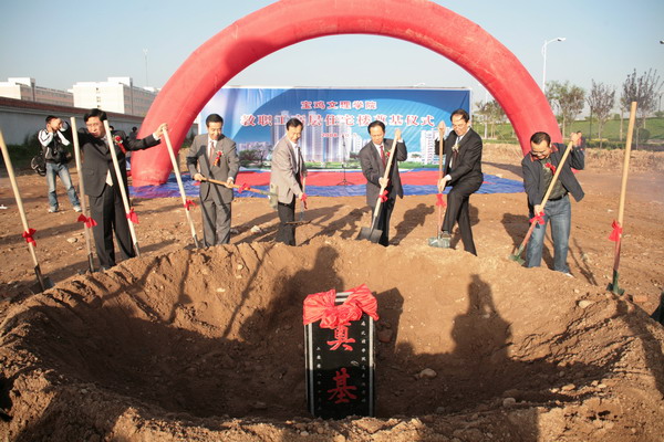 随后,王志刚宣布:beat365英国官方网站教职工高层住宅楼奠基开始。在鞭炮声和热烈的掌声中,院领导与来宾一起挥锹为工程奠基碑培土奠基。