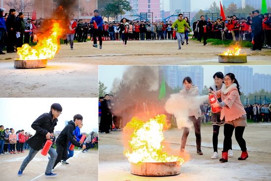 启动仪式之后,组织开展了穿越火线、接力灭火等火灾扑救演练项目。各职能部门、各院系(部)、后勤集团(公司)、社区代表参加了本次活动。本次活动还专门设立了比赛项目,并对在活动中获胜的单位颁发了奖品。参与活动的师生员工热情高涨,现场气氛热烈、井然有序,每个参会人员都自行操作灭火器现场灭火,使大家在参与灭火的过程中更多地了解了消防知识。