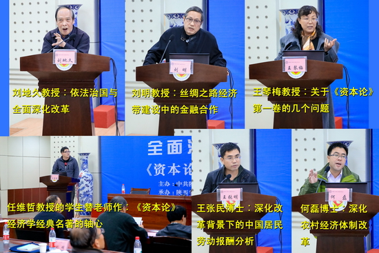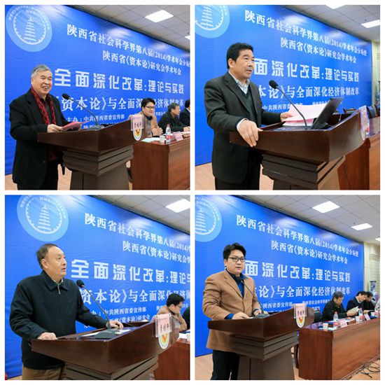 陕西省人民政府研究室副主任杨三省,西安石油大学曾昭宁教授,陕西省《资本论》研究会常务理事、西北农林科技大学田义文教授分别作了大会主题报告。专家们在专题发言阶段围绕依法治国与全面深化改革、丝绸之路经济带建设、农村经济体制改革、《资本论》研究等专题进行了深入的交流和探索。陕西省《资本论》研究会常务理事杨胜利教授作了大会总结。