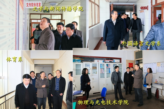 3月9日上午8:00起,校党委书记白黎,党委副书记米晓东,副校长傅志军、杨子元到新老校区走访检查各职能部门和院系行政人员上班情况、教职工工作投入情况、开学工作准备情况以及环境卫生等。