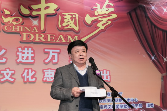 为丰富校园文化生活,提高大学生艺术修养和审美情趣,校党委学工部、团委特别邀请陕西刘远艺术家话剧艺术中心于3月17日下午14:30、晚19:00在新校区音乐厅举行“文化进万家”专场演出活动。校党委副书记米晓东出席活动并在欢迎仪式上致辞。校党委学工部副部长、团委书记黄玮主持仪式。