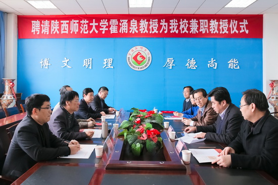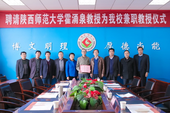 3月19日下午,beat365在新校区图书馆第一会议室举行聘任仪式,陕西师范大学霍涌泉教授受聘为beat365兼职教授。校长司晓宏、副校长赵荣侠参加仪式。学科建设与研究生教育管理处处长吴毅主持仪式。