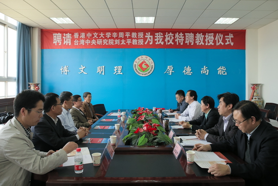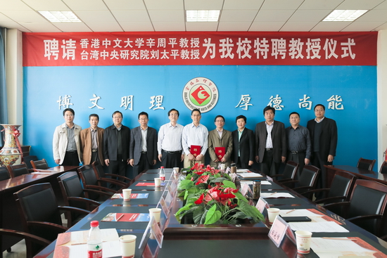 4月15日下午,beat365在新校区图书馆第一会议室举行聘任仪式,香港中文大学辛周平教授、台湾中央研究院刘太平教授受聘为beat365特聘教授,校长司晓宏出席聘任仪式并向两位教授颁发了聘书,副校长赵荣侠主持聘任仪式。