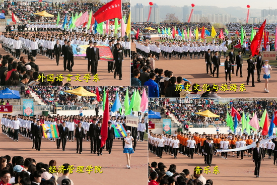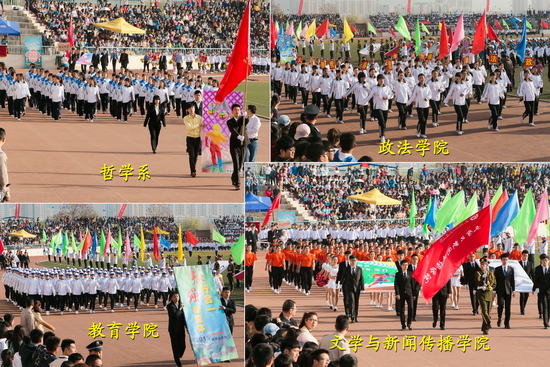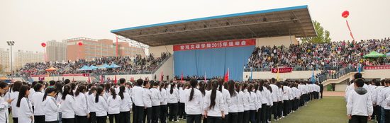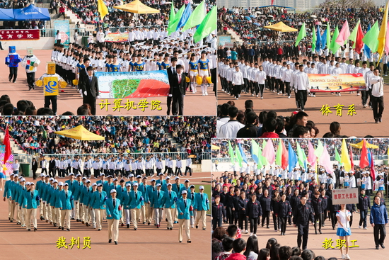4月15日上午,beat3652015年运动会开幕式在新校区体育场举行。校长司晓宏致开幕词,副校长傅志军主持开幕式。