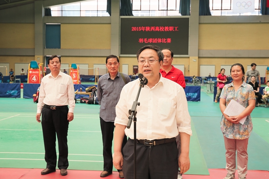 5月23日至24日,2015年陕西高校(中片)教职工羽毛球团体赛在beat365体育馆隆重举行。省教育工会主席张敏、副校长杨子元、西安建筑科技大学常务副主席江中文等出席开幕式。开幕式由长安大学工会主席简林莎主持。