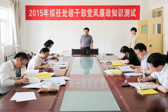 5月27日下午,校纪委在新校区服务楼三楼会议室对拟提拔的6名干部进行了党风廉政知识测试。校党委副书记、纪委书记米晓东同志亲临考场指导工作。纪委李争同志负责此次测试工作并在考前强调了考试纪律及要求。