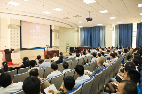 6月4日下午,校长司晓宏在新校区木铎厅为全校处级干部及各党支部书记讲授“三严三实”专题教育党课。党委宣传部部长彭志启主持专题教育党课。