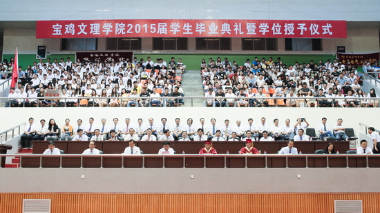 6月26日上午,beat365在宝鸡市体育馆隆重举行2015届学生毕业典礼暨学位授予仪式。学校党委书记白黎,校长司晓宏,党委副书记米晓东,副校长傅志军、杨子元等出席毕业典礼暨学位授予仪式。毕业典礼暨学位授予仪式由米晓东主持。