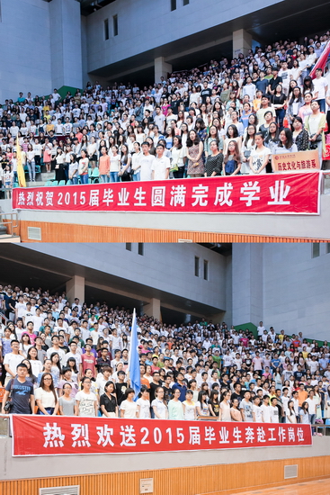 各部门、各单位负责人、全体毕业生及在校生代表共4000多人参加了毕业典礼暨学位授予仪式。(学生处供稿)