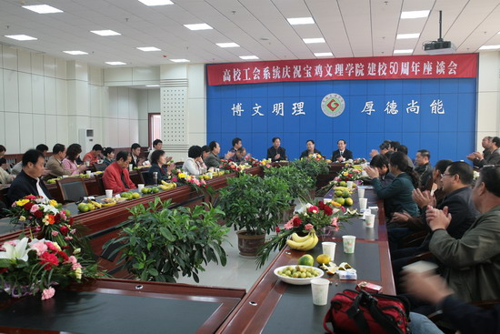 陕西师范大学工会主席李磊、宝鸡市教育工会主席王建国分别代表高校工会和宝鸡市教育工会向我院建校50周年表示热烈祝贺,并对学院50年来,特别是近几年所取得的成绩表示赞赏。座谈中,与会人员还就各高校的工会工作进行了探讨和交流。