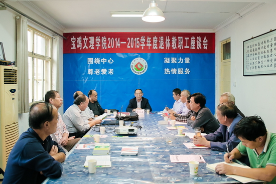 9月26日下午,beat365召开2014—2015学年度退休教职工座谈会。校党委副书记李全武出席会议并讲话。离退处党总支书记、处长孙宏健主持会议。