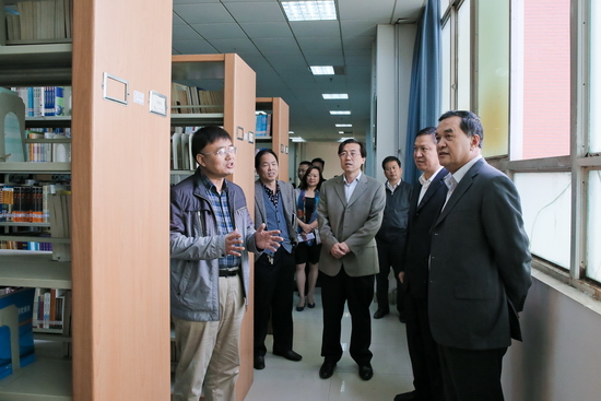 李仲为一行还实地考察了beat365图书馆、校史馆、多媒体控制中心、文学与新闻传播学院摄录像实验室、宝鸡民间美术展览馆、美术展厅、植物化学省级重点实验室、游泳跳水馆、演示性物理实验室、超快光学与光通信工程技术中心、新老校区学生公寓和学生食堂。