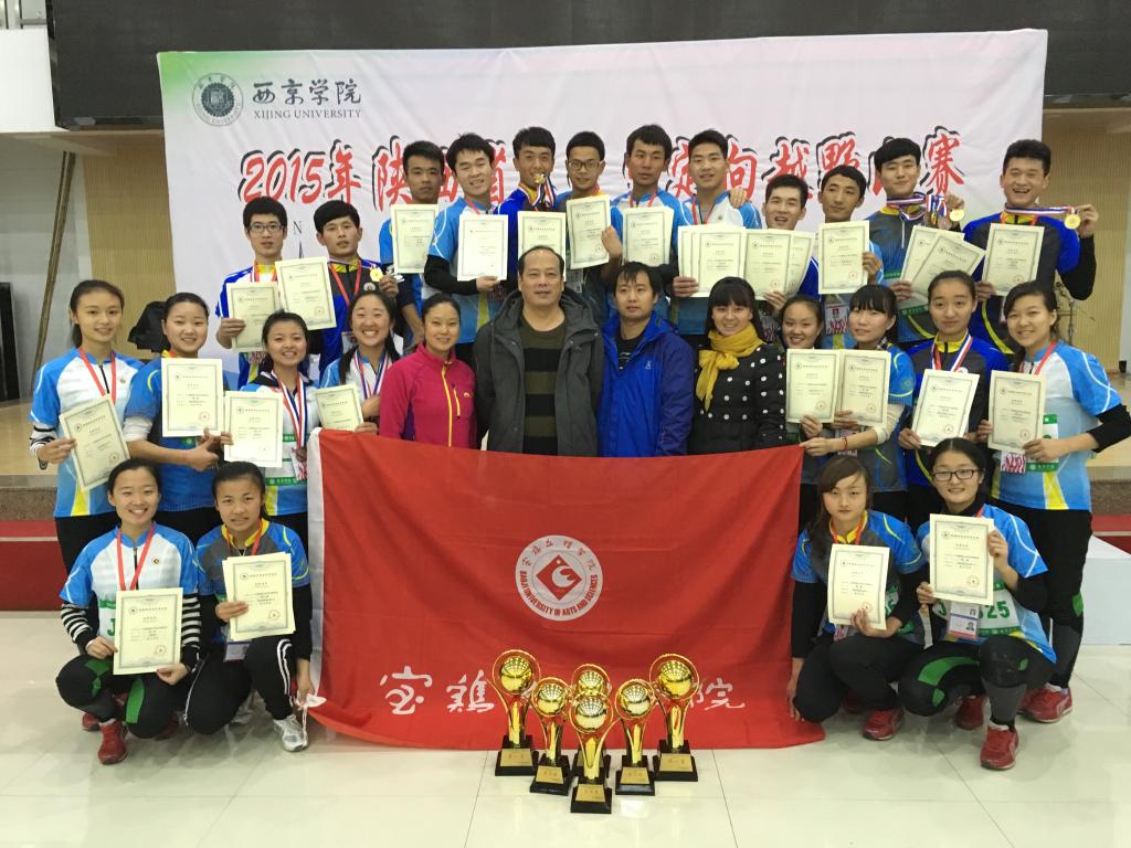 在11月20日-21日举行的2015年陕西省大学生定向越野比赛中,beat365代表队荣获甲组总团体冠军、甲组男子团体冠军、甲组女子团体亚军,荣获乙组总团体亚军,乙组男子团体亚军、乙组女子团体亚军。