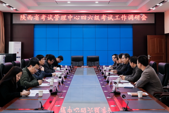 11月23日,以陕西省考试管理中心研招处四六级考试主管王敏为组长,西安财经学院教务处副处长王浩鸣、西安思源学院教务处副处长朱好杰、陕西工业职业技术学院教务处副处长赵明威、西安工业大学教务科科长张瑛、西安财经学院考务与学籍管理科科长张敏、渭南师范学院教务科科长路玉麟为成员的陕西省大学英语四六级考试调研组来beat365调研四六级考试工作。调研座谈会由王敏主持。