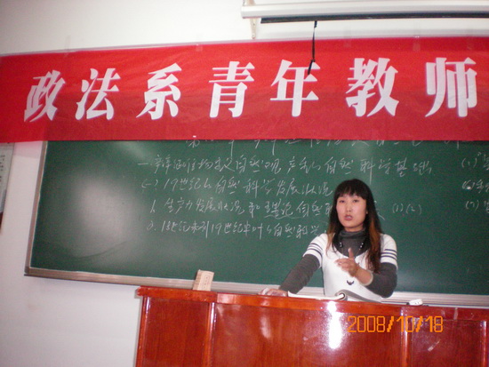 为了构建提高教学质量长效机制,进一步提高青年教师教育教学水平,加强青年教师的培养和提高,为学院青年教师教学基本技能竞赛做好准备,10月18日政法系举行青年教师讲课竞赛,全系本学期有教学任务的7名讲师全部参加了讲课竞赛.