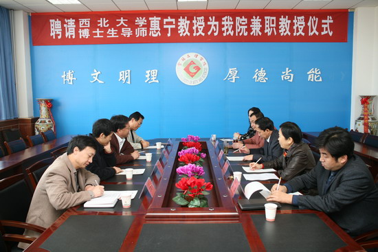 11月24日上午,学院在新校区第一会议室举行了聘请西北大学博士生导师惠宁教授为我院兼职教授仪式。仪式由副院长赵荣侠主持。