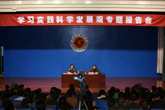 高锋教授就科学发展观提出的时代背景、重要的历史地位、深刻的内涵实质、贯彻落实科学发展观的基本要求以及如何学习实践科学发展观等五个方面,结合当前国际国内形势,用翔实的资料和生动形象的语言向与会人员作了深入浅出的讲解。高校长的报告既有深刻的理论解读,又有鲜活的现实分析;既有宏观层面上的阐释,又有典型事例的佐证;既立足于对国情的全面分析,又紧密联系当前世界发展的态势,深入浅出、形象生动、信息量大、启发性强,回答了许多理论和实践上遇到的新问题,开拓了我们学习和研究理论的新视野,对于进一步加深我们对科学发展观精神实质的理解,对于进一步提高我院干部的理论素养和教师的教学水平,对于下学期我院将要开展的学习实践科学发展观活动,具有积极的促进作用。