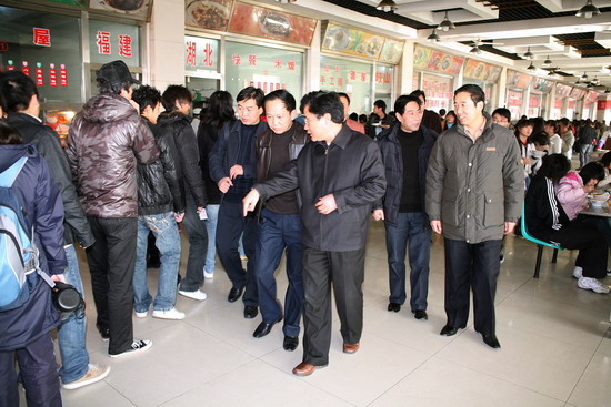 12月4日上午,院长王志刚、副院长傅志军、王普藩等对新校区学生食堂进行了检查。王院长一行逐层检查了食堂的饭菜质量、价格、服务态度以及学生的就餐秩序等。他对近期开展的大学生文明就餐活动给予了充分肯定,在检查过程中,要求食堂注意安全卫生,强化饭菜的保温措施,并勉励大学生伙委会值班干部要不怕吃苦,充分发挥在大学生伙委会中的作用,为文明就餐活动积极贡献智慧和力量。