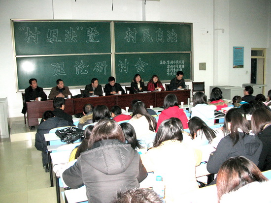 2008年12月29日下午,由宝鸡市人大常委会、市民政局、市司法局与我院政法系联合举办的“宝鸡市纪念《村民委员会组织法》实施十周年暨村民自治理论研讨会”在我院思贤楼举行。市人大法工委、市民政局基层政权与社区建设科、市司法局办公室、渭滨区民政局、金台区民政局等单位领导应邀出席。政法系师生200多人参加会议,会议由政法系副主任石玉平教授主持。