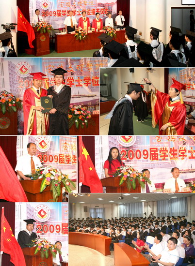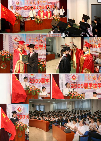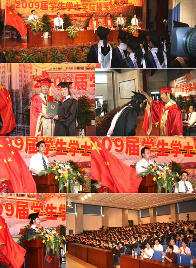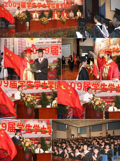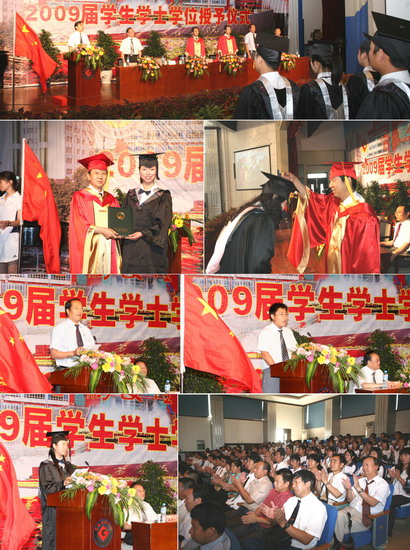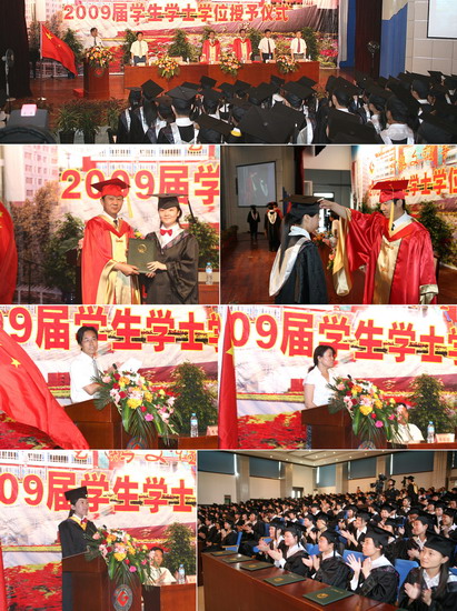 6月11日到6月18日,我院以系部为单位举行了2009届学生学士学位授予仪式。院长、院学位委员会主席王志刚,副院长、院学位委员会常务副主席傅志军,副院长、院学位委员会副主席赵荣侠,教务处处长杨子元,高教研究室主任、教务处副处长田延峰,教务处副处长孙新和各系党总支书记、系主任以及各系其他领导、部分教师、2009届本科生毕业生、部分在校生代表参加了学士学位授予仪式。