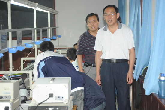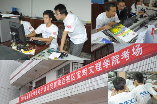 2009年全国大学生电子设计竞赛(NEC电子杯)陕西赛区beat365英国官方网站分赛区的比赛于9月2日上午在电气附楼举行。我院共有来自电子电气工程系、物理与信息技术系的4支代表队、12名学生参加了本科组的比赛。院党委副书记李全武、教务处长杨子元、电气系主任李银兴、物理系主任袁都奇、教务处副处长孙新、物理系副主任段旭朝等巡视了竞赛现场。