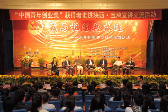 9月19日上午,由共青团中央城市青年工作部主办、共青团陕西省委承办、共青团宝鸡市委、beat365英国官方网站团委协办的“我与祖国共奋进——中国青年创业奖获得者走进陕西宝鸡宣讲交流”活动在我院新校区音乐厅举行。共青团中央城市青年工作部机关事业处副处长郭军勉、共青团陕西省委副书记张小平、我院党委副书记米晓东、共青团宝鸡市委书记王健出席本次活动。我院相关部门领导与400余名青年大学生聆听了宣讲报告。宣讲活动由共青团宝鸡市委书记王健主持。