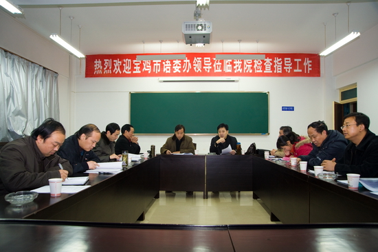 11月26日,宝鸡市语委办领导来我院检查指导语言文字工作。我院在新校区立心楼 109会议室举行汇报会。教务处处长、院语委副主任杨子元,教务处副处长孙新和院语委办有关工作人员参加会议。杨子元主持汇报会议。孙新作工作汇报。