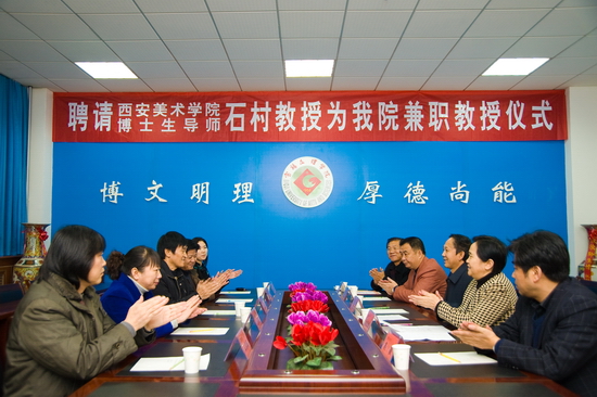 11月30日下午,我院在新校区第一会议室举行西安美术学院博士生导师石村教授受聘为我院兼职教授聘任仪式。院长王志刚出席会议并讲话,副院长赵荣侠主持聘任仪式。