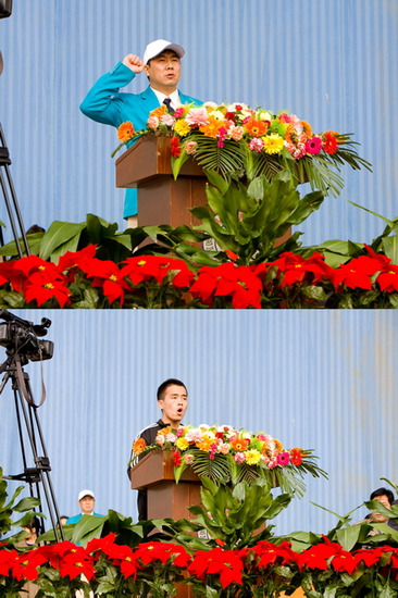 裁判员代表体育系教师王虎和运动员代表美术系学生韦加稳分别向大会庄严宣誓。