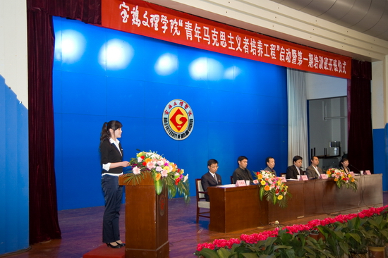 4月28日下午,学院“青年马克思主义者培养工程”启动暨第一期培训班开班仪式在新校区音乐厅隆重举行。院党委书记赵怀礼,院党委副书记米晓东,院党委组织部部长郑存库,院党委学工部部长、学生处处长、毕业生就业指导服务中心主任李周让,院团委书记黄玮,青年马克思主义者培训学校全体成员,第一期培训班指导教师、全体学员及各系学生代表420余人参加了启动仪式,仪式由院团委副书记党建波主持。