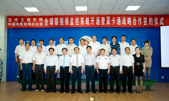 米晓东在签约仪式上作了讲话。他指出,维护校园稳定安全是学校教育管理工作的重要保障。党中央历来高度重视各级各类学校稳定安全工作,省委省政府以及省委教育工委反复强调加强校园安全稳定的极端重要性和紧迫性。特别是近期多起校园恶性事件的发生,引起了社会各界的高度关注。在这样的大背景下,校园数字监控系统的正式交付使用,对于提升学院人防、物防和技防水平,维护校园稳定安全必将起到积极的作用。实现了对全院重点单位、重要部位、交通要道等区域的监控,进一步提高了维护校园稳定的能力,确保了校园的稳定安全。他说,宝鸡电信分公司与学院签订“翼卡通”项目合作意向书,为学院提供“翼卡通”业务平台及所需设备,建立餐厅、超市、图书馆、公寓及教学、办公考勤等“翼卡通”业务,给师生员工的学习和生活提供更为便捷、高效的服务,将为全面推进我院数字化校园建设打下坚实的基础。他希望宝鸡电信分公司和学院相关部门进一步通力合作,共同做好设备的日常维护,确保数字监控系统的正常运转,尽早组织实施“翼卡通”系统的配置,使双方在校园现代化、信息化建设中实现“双赢”。